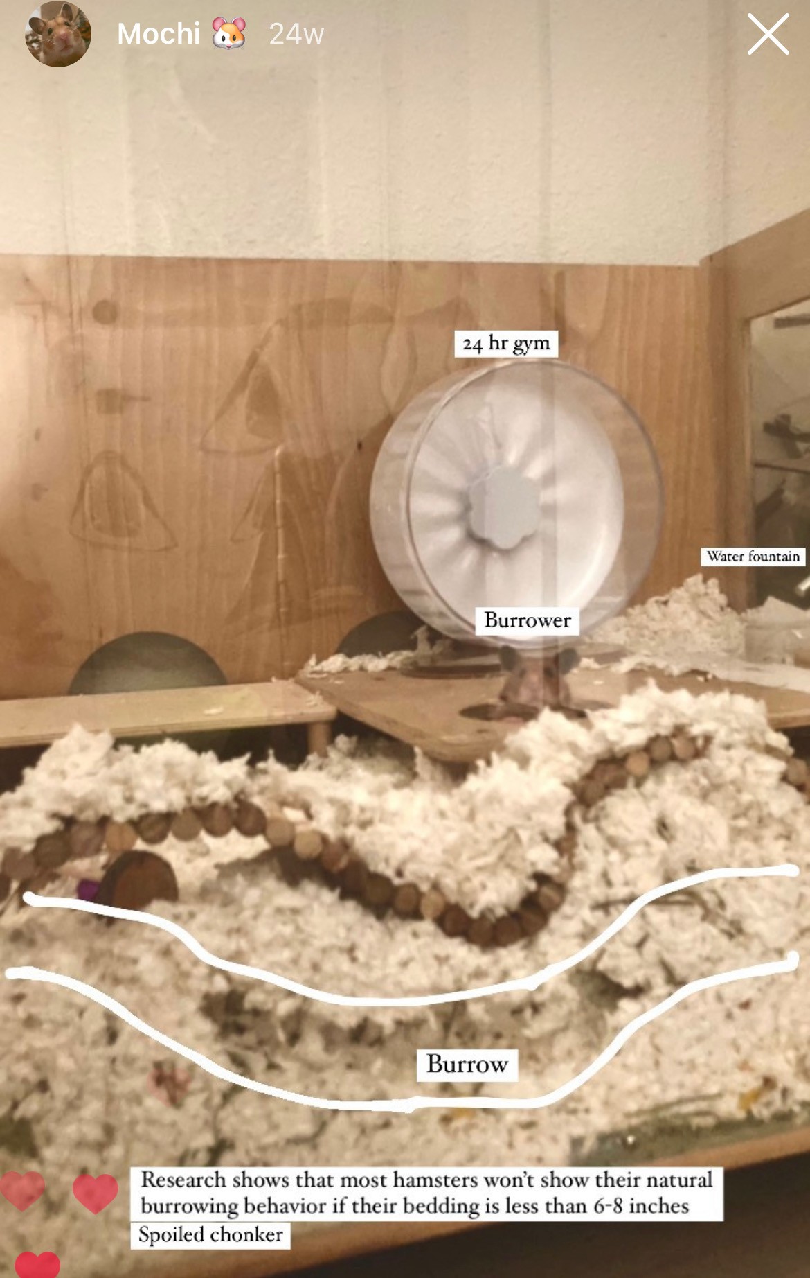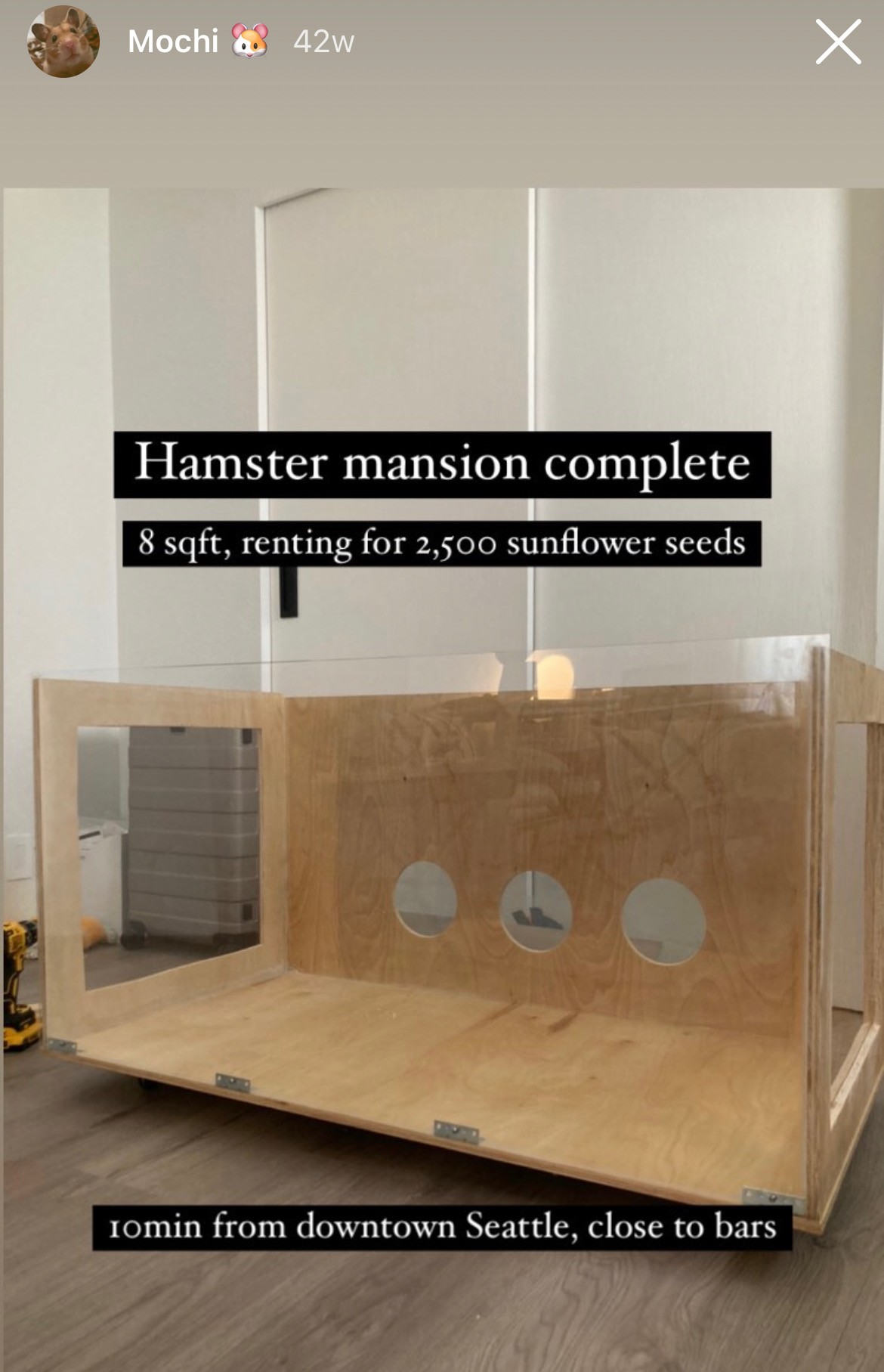 I was the mansion builder and full time human for Ms. Mochi the Hamster. I was supposed to go to Home Depot to pick up plumbing supplies for our housing project, but decided to rescue a stressed hamster instead. It was her lucky day, and it has since became one of the greatest joys of my life. Thank you, Mochi.