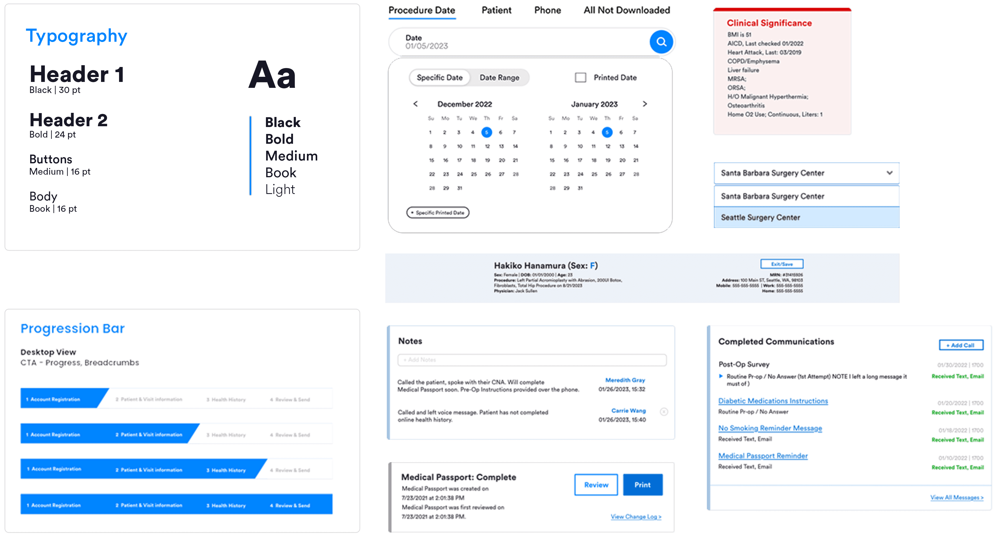 To ensure designs and platform consistency are align with the parent company's aesthetics, I helped develop a design system. This system features reusable components—patient name bars, modules, list items, and buttons—that maintain design consistency and streamline the design-to-development handoff process.