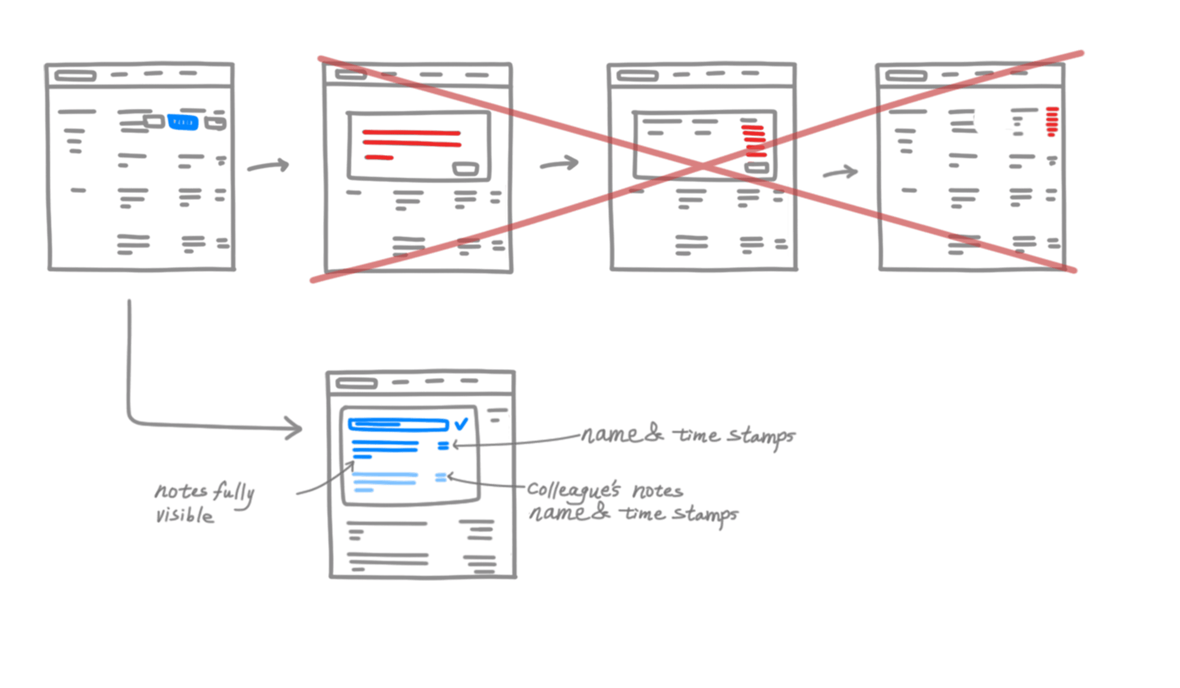 Using the "Law of Proximity" from UX principles, the note-taking area was expanded and centralized. This adjustment enables clinicians to easily access and act on essential communications, improving workflow efficiency and patient safety.