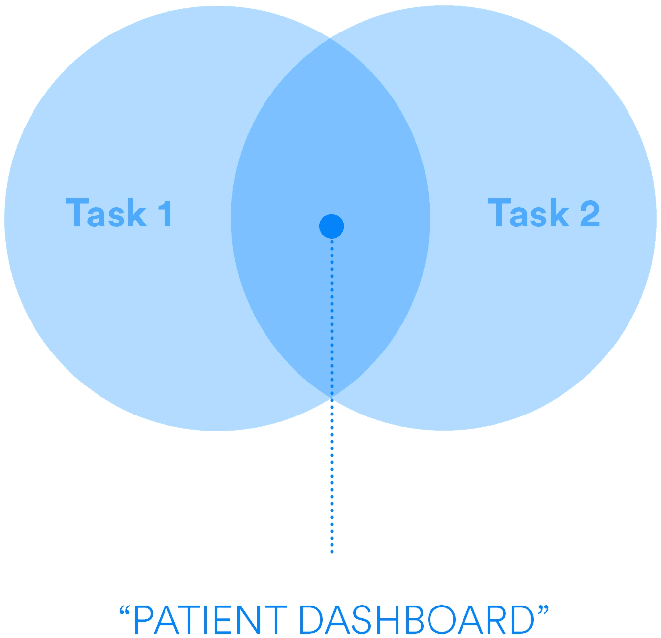 Below are comparison screens showing the original and the newly designed "Patient Dashboard" page that resulted from combining tasks 1 and 2.
