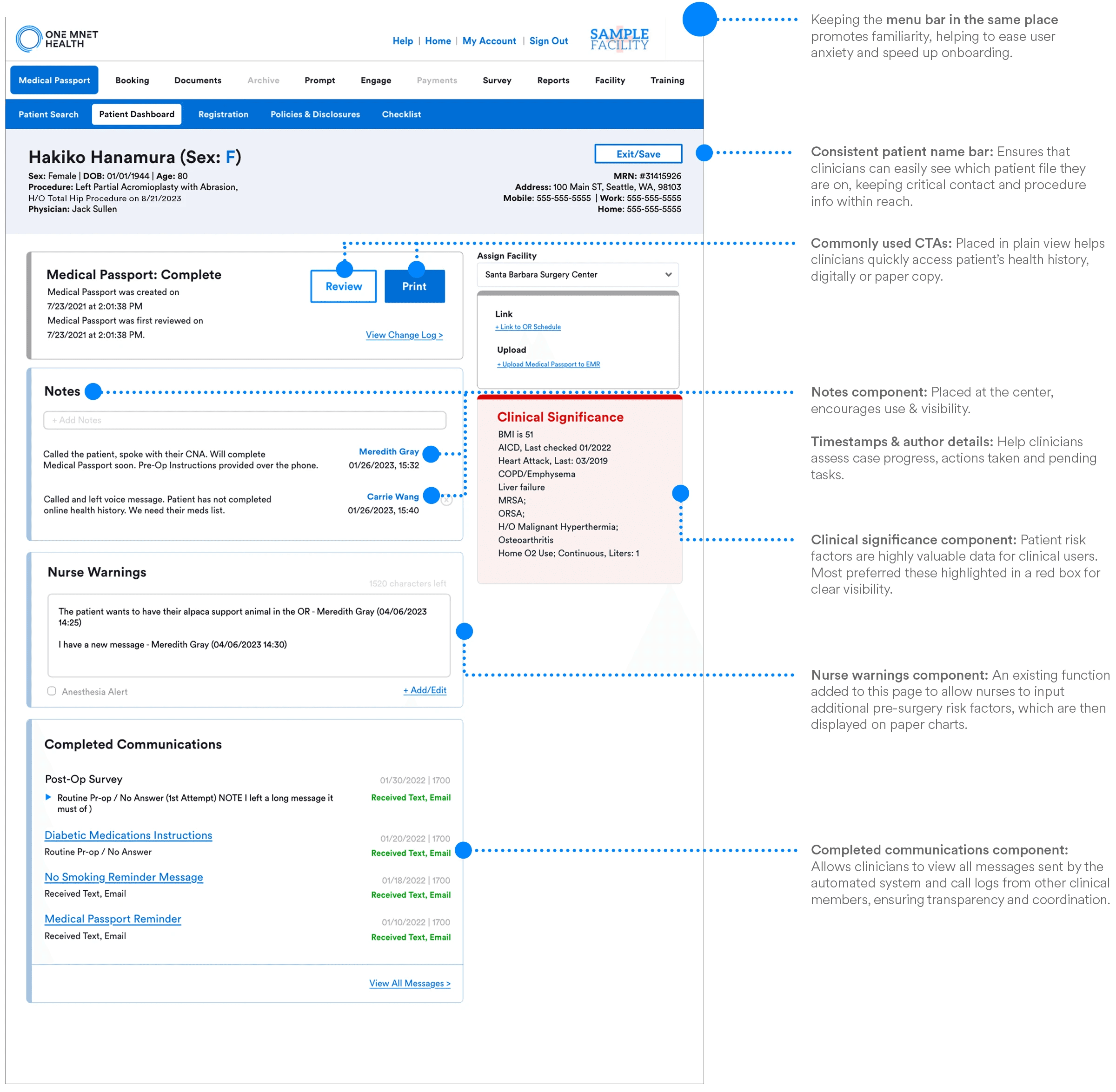My designs helped over 1,200 surgery centers and 15,000 clinicians streamline pre-surgical workflows, enhancing health history retrieval and documentation experiences. These improvements resulted in:
